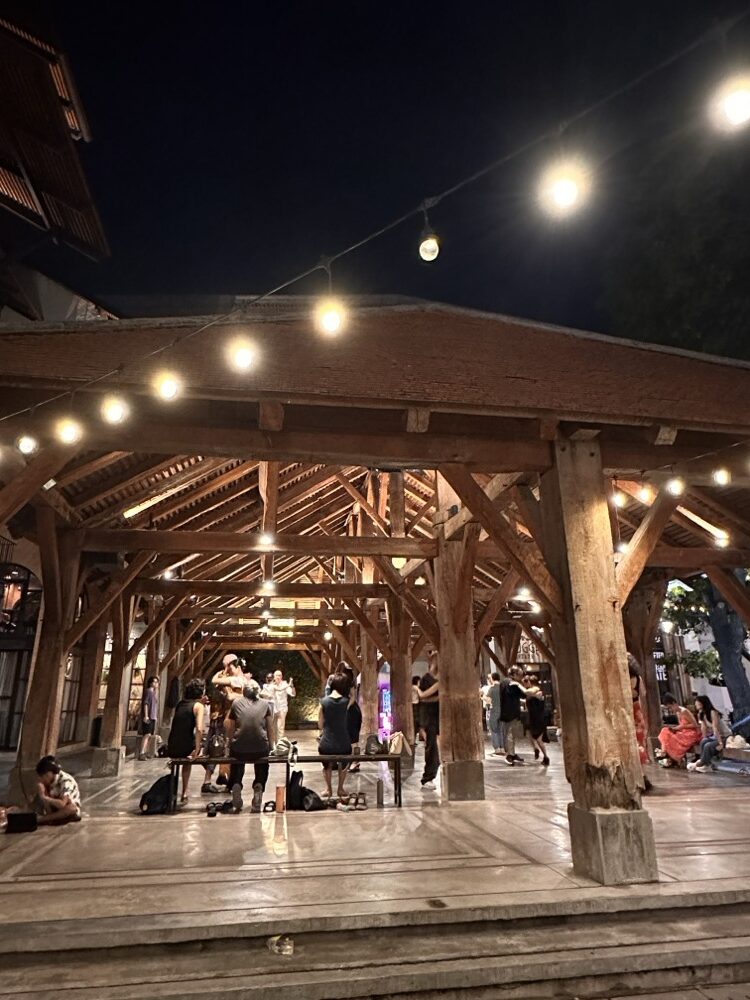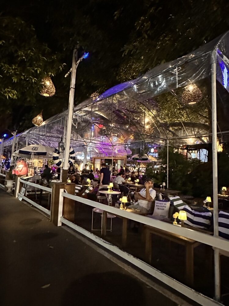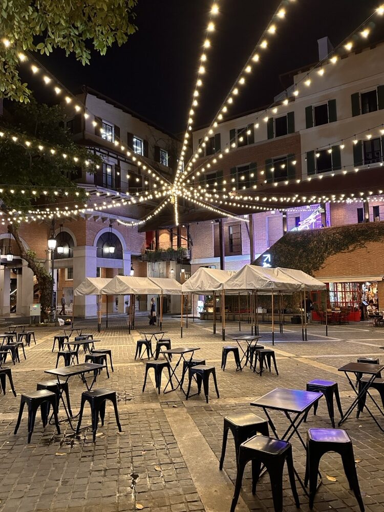 順著路口往右繼續走有一個小廣場,晚上吃飯還可以聽Live Band超High