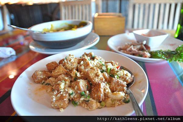看艾瑞克一轉眼就嗑掉一碗白飯,鹹蛋豆腐今天炸得有點老,沒有以往美味 (哭哭)