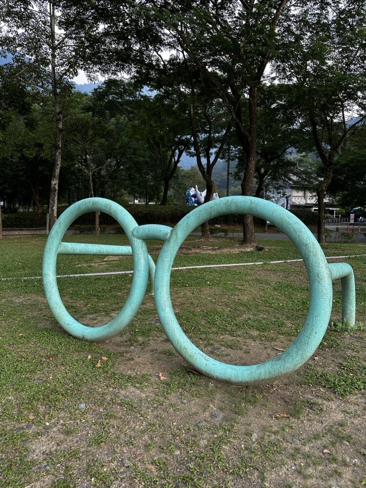 入口處有很可愛的薄荷綠色巨型眼鏡